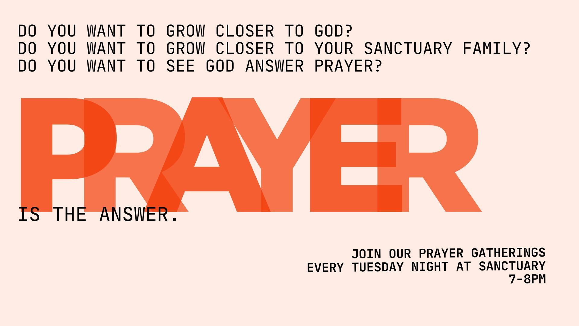 Come and experience worship-based prayer as we seek God's face together. We meet every Tuesday evening at Sanctuary, 7-8pm at Sanctuary.