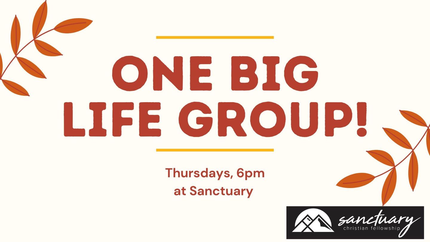 Please join us for One Big Life Group at Sanctuary on Thursdays, 6-7:30pm. We will meet and watch a video by Francis Chan on the Book of Mark, then break out into smaller groups. This is an eleven week video study (skipping Thanksgiving and ending on December 4th) from the book of Mark We would love for you to join us in person at Sanctuary but if you are not able to do so, please join us via zoom (log in information below). Light snacks will be provided. Please feel free to bring your dinner.